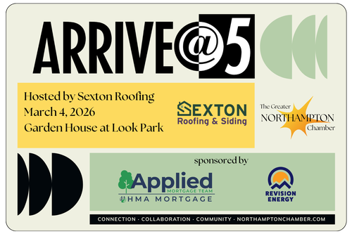 Join us for our monthly ARRIVE@5 networking event, hosted this month by Sexton Roofing & Siding at the Garden House at Look Park! Our thanks to our event sponsors Applied Mortgage and Revision Energy. Bring a friend and introduce someone to our Chamber community!