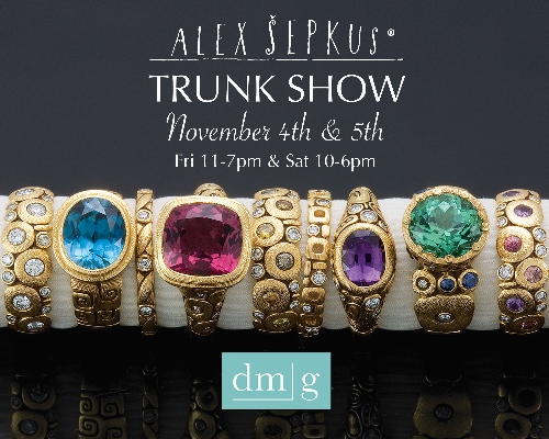 The extended collection of celebrated jeweler Alex Sepkus is back! For two days only, Indulge yourself in his distinctive, award-winning pieces, including earrings, necklaces, gemstone rings, and bridal. November 4th & 5th at dmg (Don Muller Gallery Inc.) in Northampton, MA.