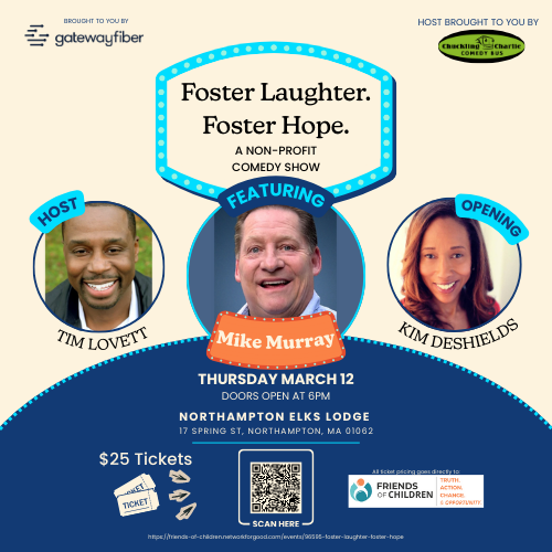Join us for an uplifting night of comedy supporting Friends of Children, an organization standing beside foster youth of all ages. Enjoy top-notch performances by Tim Lovett, Kim Deshields, and Mike Murray all while helping provide essential resources, stability, and opportunities for young people impacted by the child welfare system.