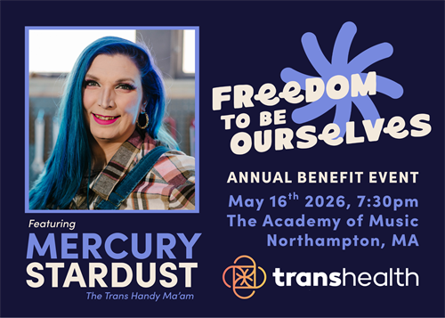 Join us for Transhealth’s Freedom to Be Ourselves Annual Benefit on Saturday, May 16th at the Academy of Music in Northampton, MA. Celebrate and support Transhealth’s mission of protecting and expanding access to gender-affirming care with an unforgettable evening that will illuminate the power of hope, the warmth of joy, and the courage required to live authentically.
